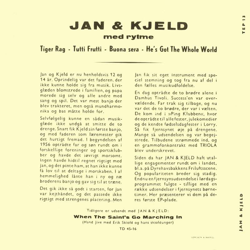 | TD 45-16 | Erik Skiold: 6-5 Hand Jive --- Jan & Kjeld: When The Saints Go Marchin` In |